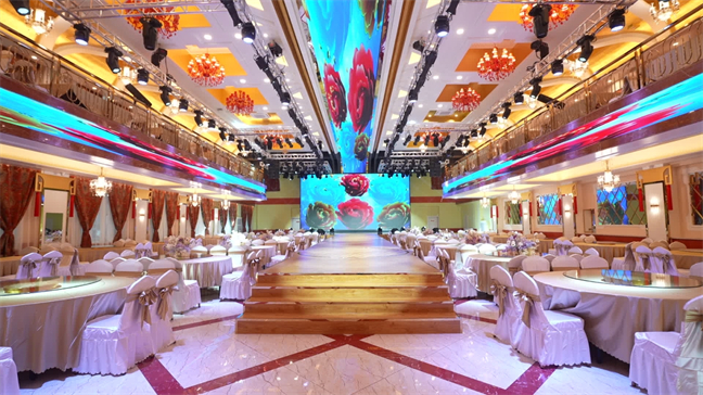 月亮廳—面積249㎡,此廳選用移動(dòng)吧臺(tái) 及移動(dòng)音控設(shè)備,可擺放12張1.8米的宴會(huì)桌。